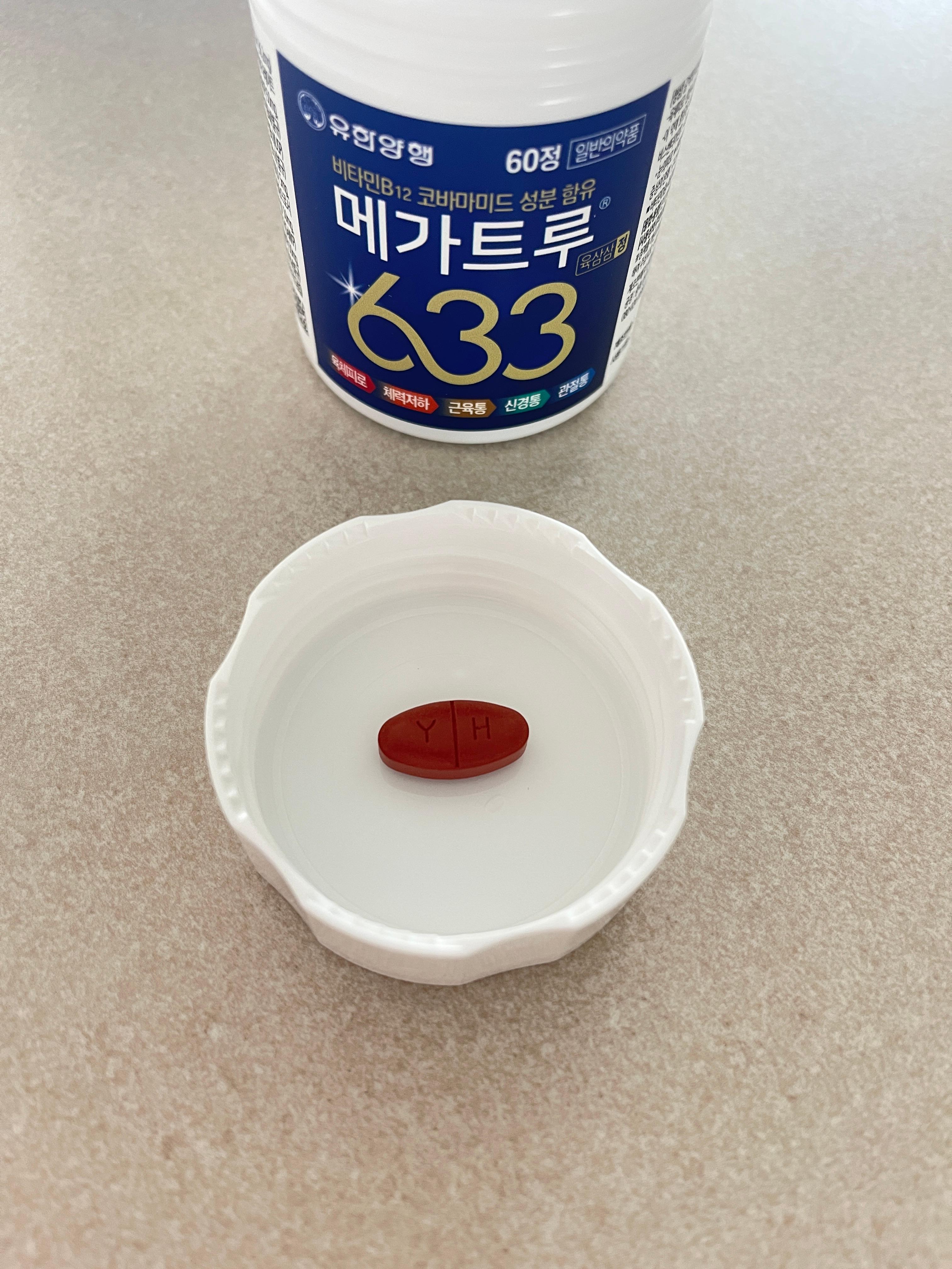 직접 열어본 메가트루 633은 정제 크기가 적당하고(사진 참조), 60정 단위라 두 달 가까이 복용 가능해 가성비도 괜찮아 보입니다.